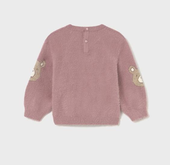 Jersey de manga larga para bebé. Cuello redondo. Cierre con botones en la espalda para facilitar la puesta de la prenda. Dibujo tejido con técnica intarsia.