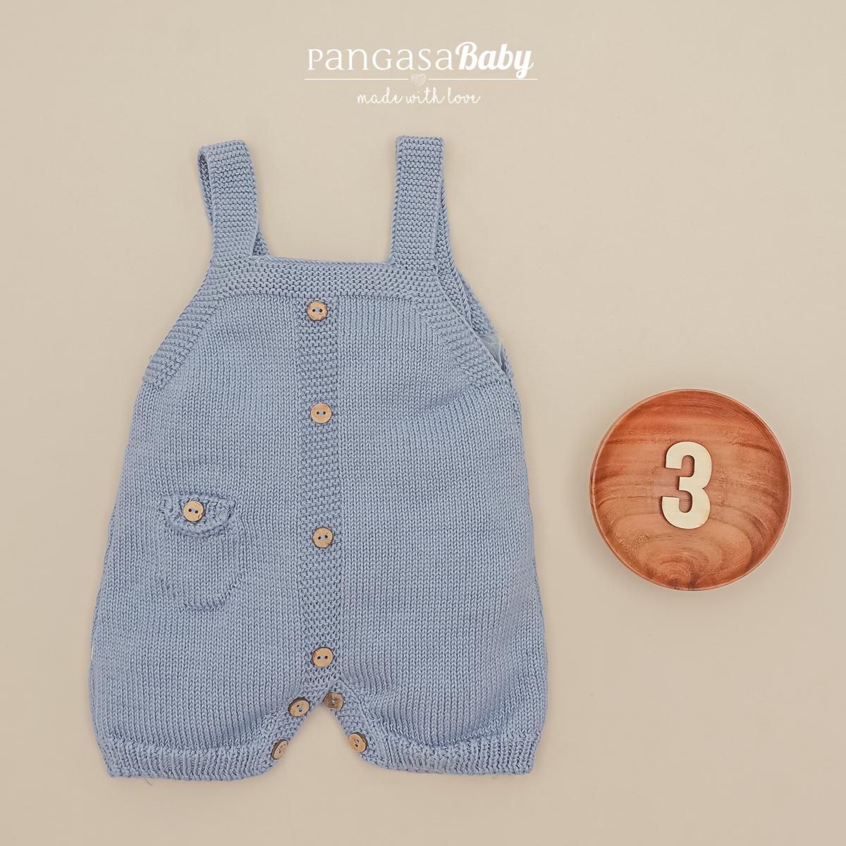 Peto de punto tejido en 100% cotton, con detalle de bolsillo y adornos de botones estilo madera. Para que tu compra sea perfecta aquí tienes la Guía de tallas de Pangasa Baby: