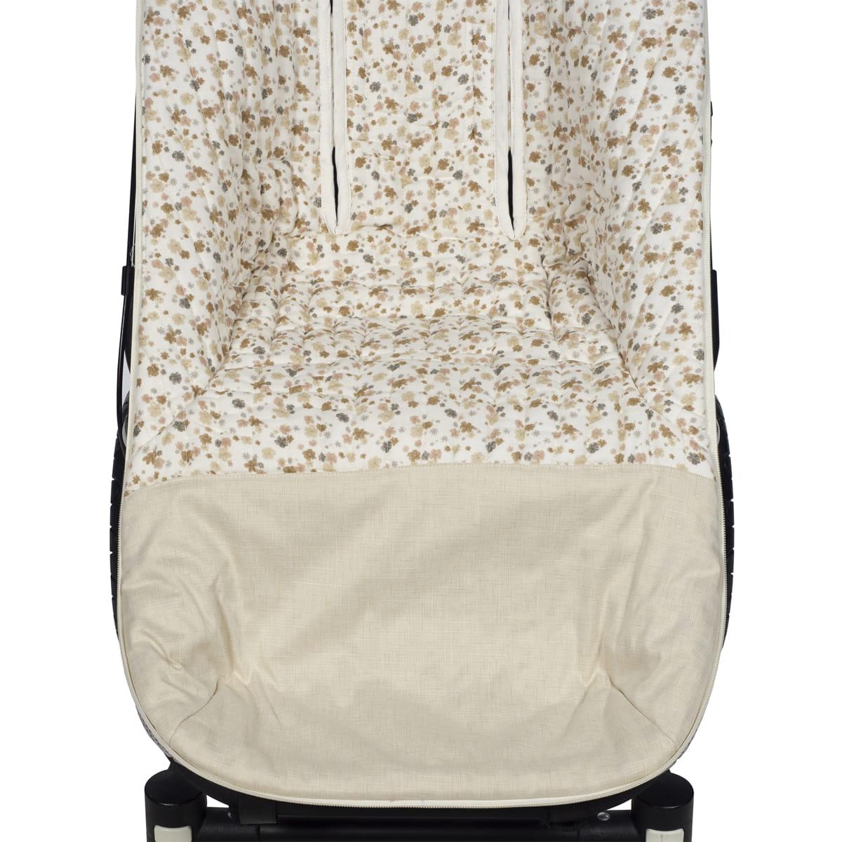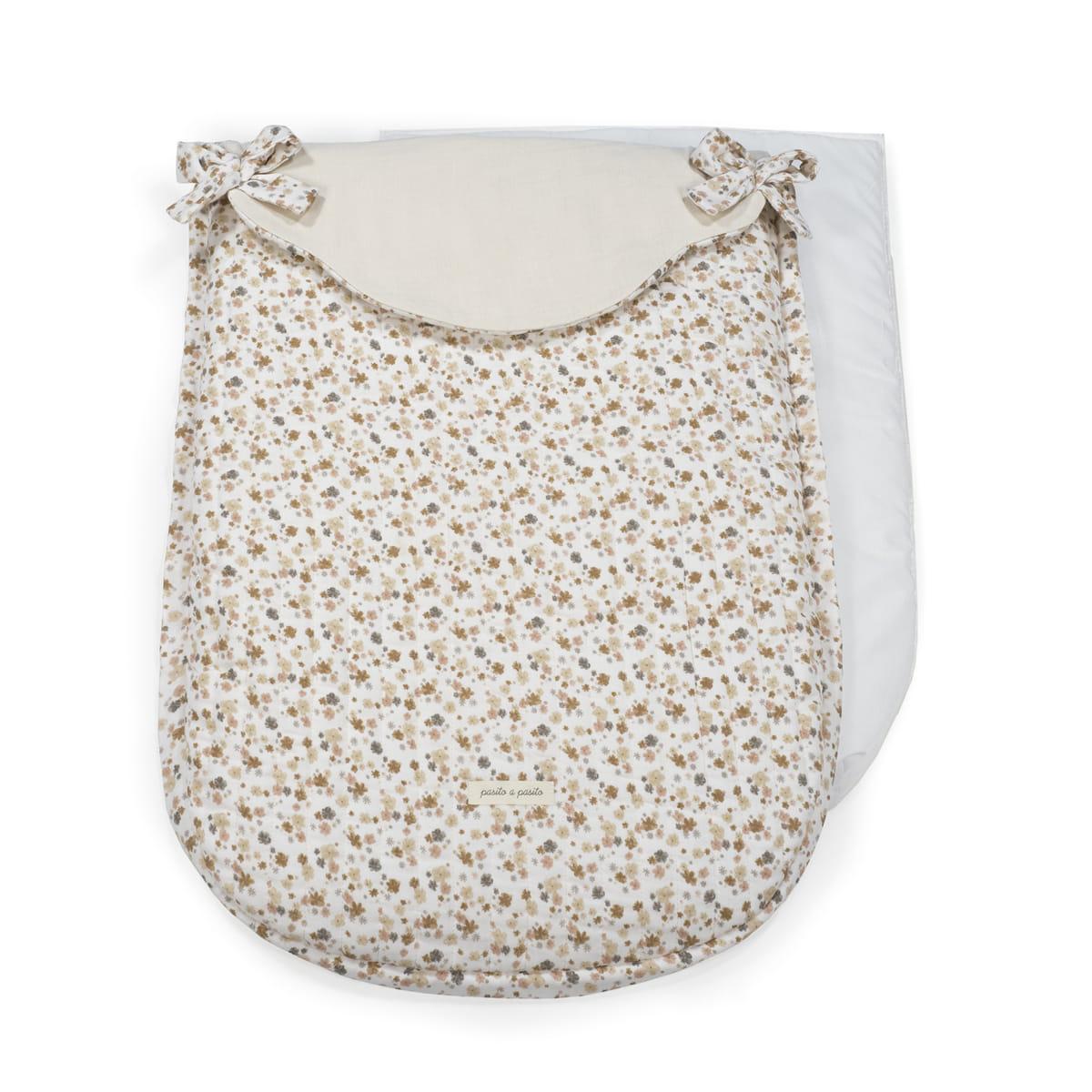 Funda Somerset de Pasito a pasito en tejido estampado de flores y bambula muy suave ideal para cubrir la silla de paseo provista de saco. Está diseñado en el respaldar con una capa de tejido en material transpirable que aísla la humedad y evita la sudoración excesiva del bebe haciendo el paseo más confortable. Relleno de fibra hueca extraíble. Reposapiés de poléster para facilitar la limpieza. Dispone de varias aperturas (ojales) y ajustes para adaptarla a la mayoría de la sillitas de paseo, convirtiendo el paseo de tu bebé seguro y confortable. Es un diseño bonito, simple y cómodo que crea un nido para tu bebé manteniéndolo arropado y protegido en días de brisa. El saco se adapta sin problemas a cualquier coche para darle la comodidad que necesita. Acabados de calidad. Todas nuestras fundas están fabricadas conforme a las más exigentes normativas europeas, con materiales de gran calidad, libres de colorantes azoicos, ftalatos y sustancias nocivas para la salud. Tela de fácil limpieza, se recomienda lavar a máquina a 30º. Los productos para bebé de Pasito a Pasito cuentan con un diseño muy diferente a todas las demás. Sus colecciones se caracterizan por el trabajo al detallada, pensadas siempre desde un punto de vista práctico. Utilizan materiales de primera calidad para remarcar la elegancia y la armonía en cada una de sus piezas. Nuestros modelos son exclusivos y de estilo inconfundible, pensados en las madres actuales que gozan de buen gusto y que aprecian los detalles tanto como nosotros. Materiales: 100% algodón. Tamaño universal.