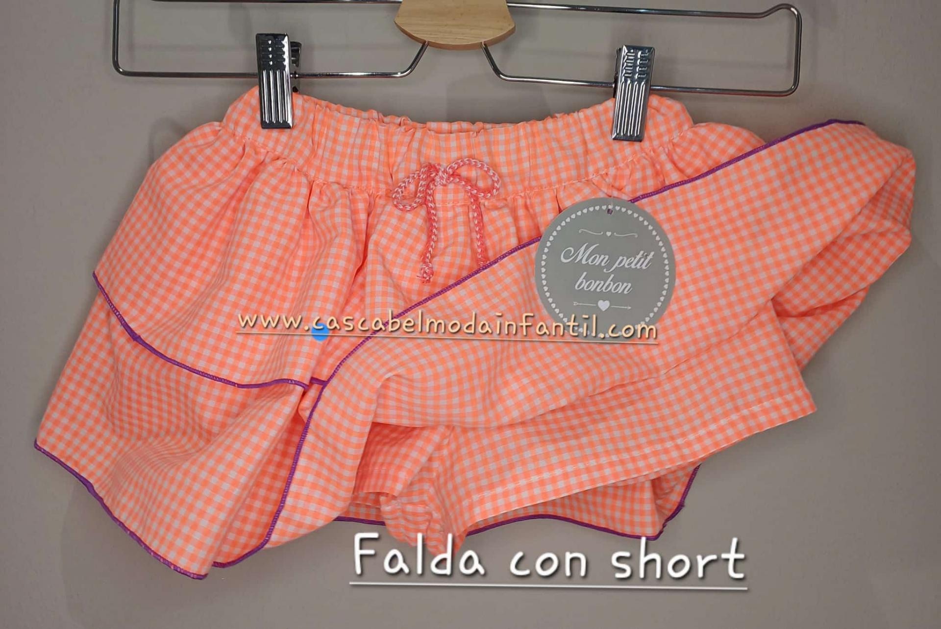 Mon Petit Bonbon- Conjunto niña- camiseta flores y Falda pantalon vichy fluor- 170+174
