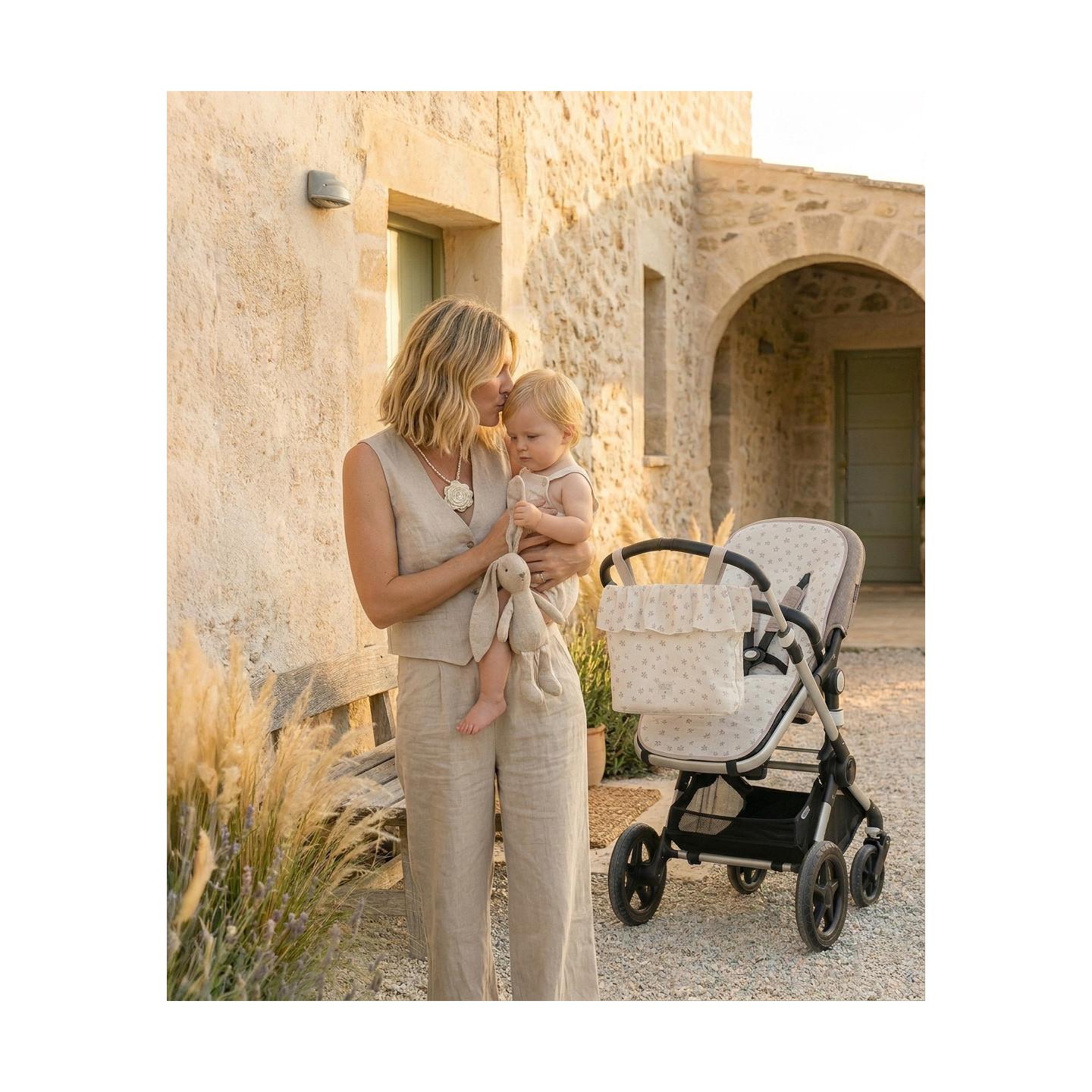 Bolso con volante adaptable a cualquier cochecito, diseñado para ofrecer comodidad y estilo en cada paseo. Incluye una práctica tira interior que permite llevarlo también al hombro. Elegante, funcional y con gran capacidad para guardar todo lo necesario para ti y tu bebé. Cuenta con cierre de cremallera para mayor seguridad y puede lavarse a mano o a máquina siguiendo las indicaciones. Un básico práctico y versátil para el día a día.