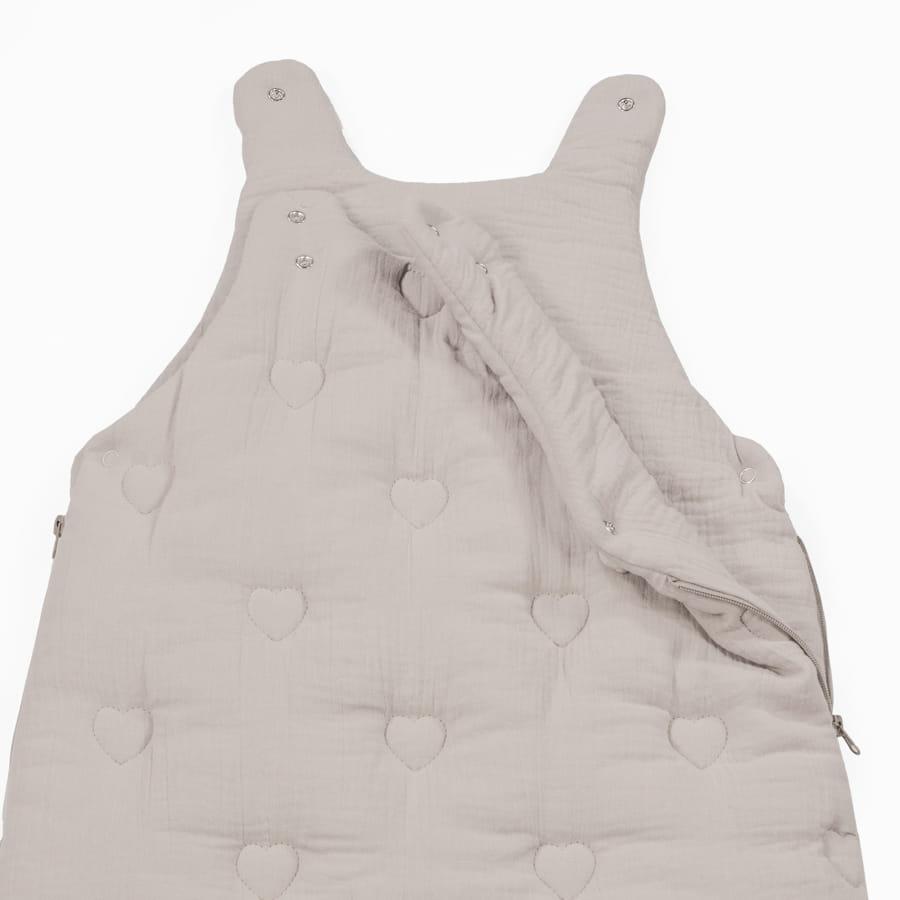 El saco de dormir para bebés Sintra beige con corazones bordados ofrece el máximo confort y seguridad para los más pequeños durante sus horas de sueño. Con un diseño actual en color beige, este saco está fabricado con una suave muselina 100% algodón para que tu bebé se mantenga cómodo y calentito. El diseño sin mangas permite libertad de movimiento, mientras mantienen al bebé abrigado durante toda la noche. Se cierra con botones a presión en los tirantes para un ajuste seguro y fácil colocación, permitiendo un acceso rápido y cómodo. Está diseñado para mantener al bebé arropado de manera segura, evitando el riesgo de asfixia con mantas sueltas. Ideal para bebés de 1 a 4 meses. TOG (Thermal Overall Grade) 2.5. Cumple con la normativa europea EN 16781:2018. Artículos textiles para el cuidado infantil. Requisitos de seguridad y métodos de ensayo para los sacos de dormir infantiles. Este saco de dormir de Walking Mum es una opción ideal para padres que buscan comodidad, seguridad y estilo en los productos de sus bebés. Proporciona un ambiente de sueño seguro y cómodo para que el bebé duerma plácidamente durante toda la noche. Fabricado en materiales resistentes y de fácil limpieza a mano o a máquina a 30 °C. Walking Mum protege a tu bebé utilizando los mejores tejidos, libres de colorantes azoicos y sustancias nocivas para la salud. Especificaciones: Materiales: 100% Algodón. Medidas: 47X70 cm.